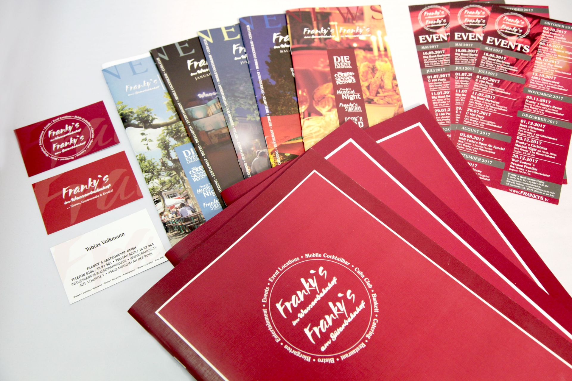 Tischsets, Kellnerblöcke, individuelle Speisen- und Getränkekarten, Fahnen, Sticker, Kugelschreiber, Briefpapiere, Flyer, Broschüren, Schilder, Polos, Hemden, Schürzen und Co.